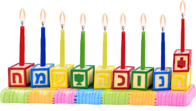 Fun menorah with a multicolor block theme. Each block has a Hebrew letter that spells out the word Hanukkah. Fits standard Hanukkah candles. Cup size .375". Measurements: 12"W x 3.25"H. Made from hand painted resin. Note: Candles sold separately.